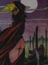 Léone FROLLO est né le 9 avril 1931, son parcours en étonnerait plus d'un par sa diversité. Tout d'abord voué à l'architecture de part ses études, puis un temps attiré par les courts métrages amateurs au cinéma, c'est dans l'illustration et la Bande Dessinée que ce vénitien très attaché à la "Cité des Doges" fera notre plus grand bonheur. Artiste prolifique mais néanmoins discret, FROLLO a, de façon brillante, fait ses armes dans les sulfureux "fumetti per adulti" qui ont fait souffler un vent de tempête chez les censeurs frileux du début des années 1970. Ses premières héroines "Blanche Neige" ou bien "Luciféra" évoluant dans des mondes médiévaux, sont l'annonce d'un style dont la qualité surpassait déjà les productions de l'époque. Son travail sera d'ailleur longtemps imité voir plagié. Par la suite son talent est unanimement reconnu par le biais de séries chatoyantes classiques "Casino" et un tantinet perverse "Shatane", mais c'est avec Mona Street que FROLLO trouvera son personnage de prédilection. La consécration arrive avec la réalisation de somptueuses illustrations pour le compte de magazine internationalement reconnus comme "Glamour" et "Diva". |