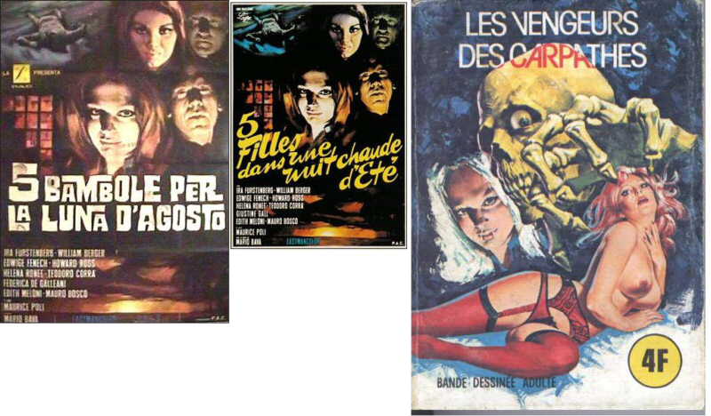 Un visage avec apport de canines vampiriques emprunté à l'affiche du film de Mario Bava " 5 Filles dans une Nuit Chaude d'Eté " - connu en France sous le titre " L'Ile de L'Epouvante " - 1970