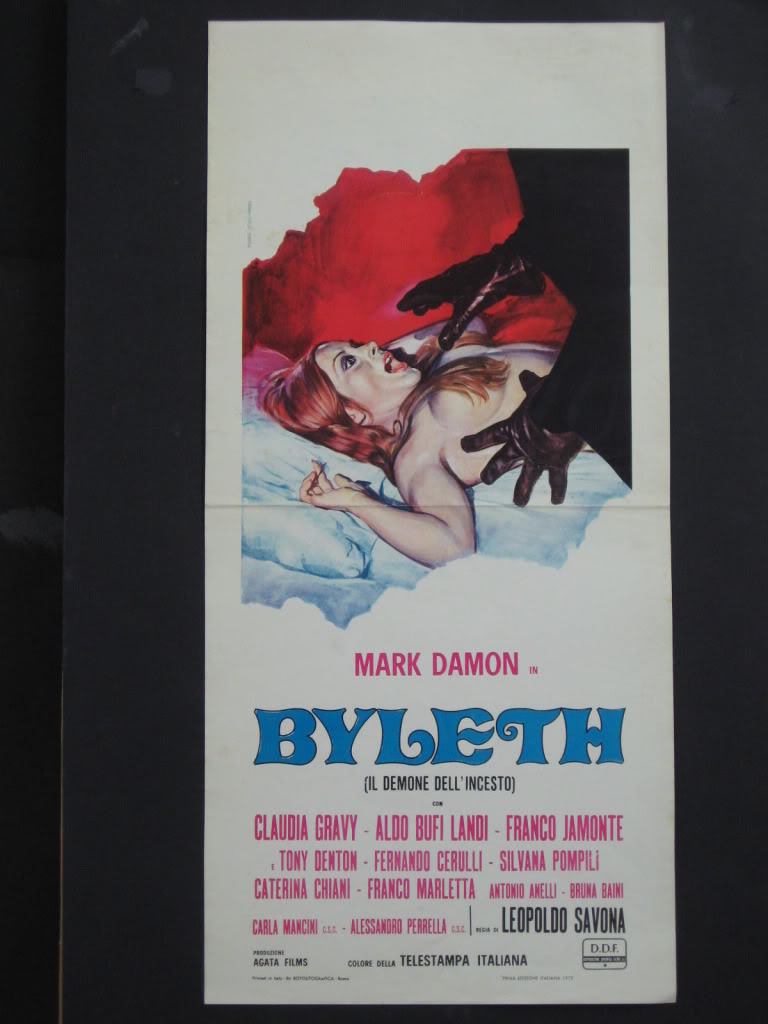 L'illustrateur de la couverture du série verte numéro 25 (La Mort prend le départ) s'est inspiré soit d'une photo d'exploitation soit d'une affiche du film Byleth : il demone dell'incesto (Démons sexuels, Leopoldo Savona, 1972). Infos: Emmanuel LEVAUFRE | ||||
