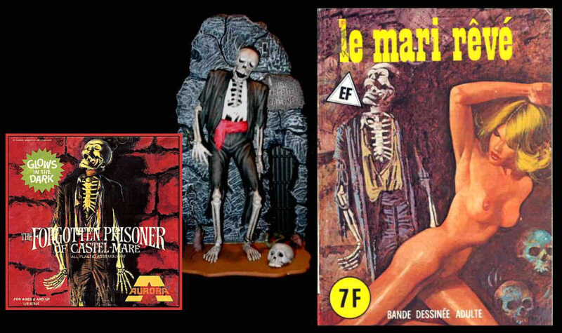 Un illustrateur maquettiste à ses heures ? Peut-être… Ce squelette est pratiquement la copie fidèle de la couverture du " forgotten prisoner ", un petit joyau macabre d'une bien belle collection de maquettes d'horreur. Sources: Renzo Portinari, Paris. |